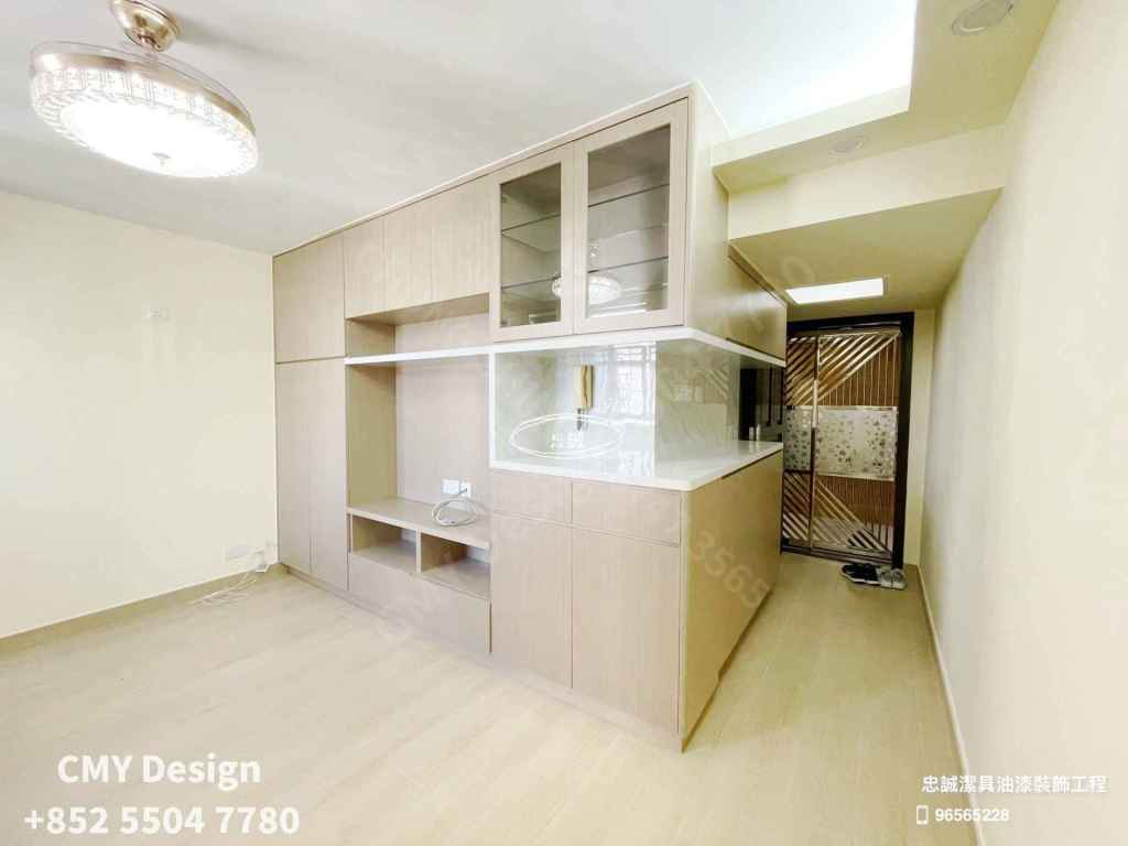 全屋裝修:油漆, 坭水, 鋪磚, 更換鋁窗, 燈槽, 水電重做, 訂造傢俬(包括各房門/廚門/廁門), 大門翻新