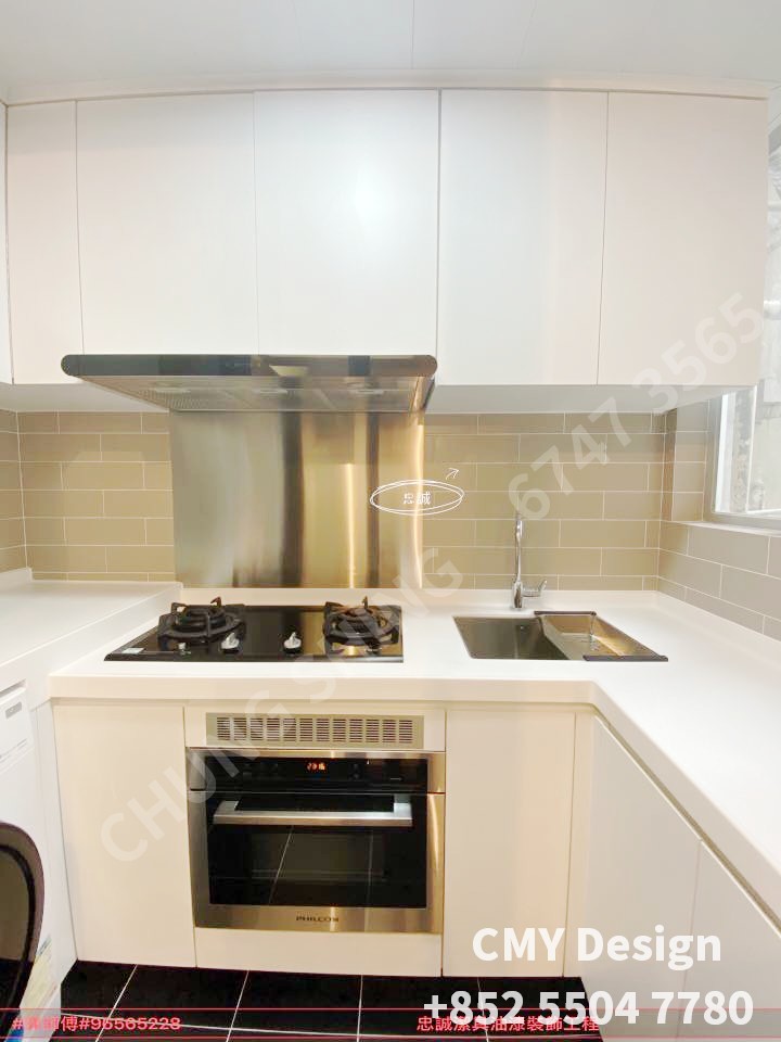 本來業主一家對開放式廚房頗有興趣 但由於飼養數隻猫猫🐱經陳師傅建議下改裝成玻璃燙門