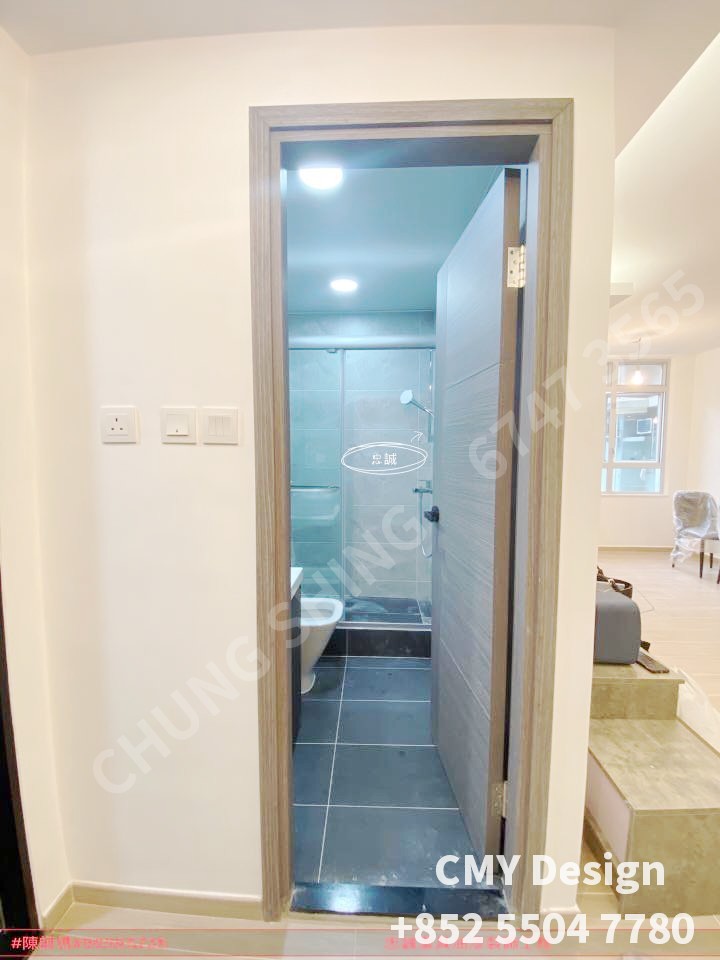 洗手間門本來對正客廳 影響屋內空間感 擺放家具變得不美觀 陳師傳及業主相討下 洗手間亦有小許改動