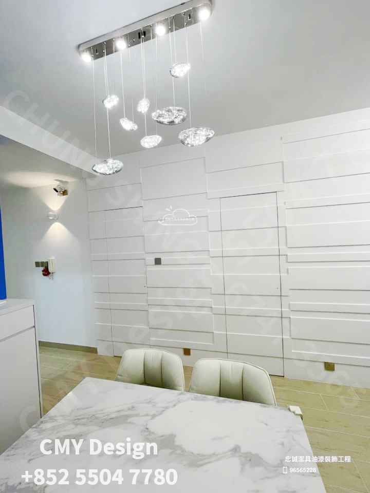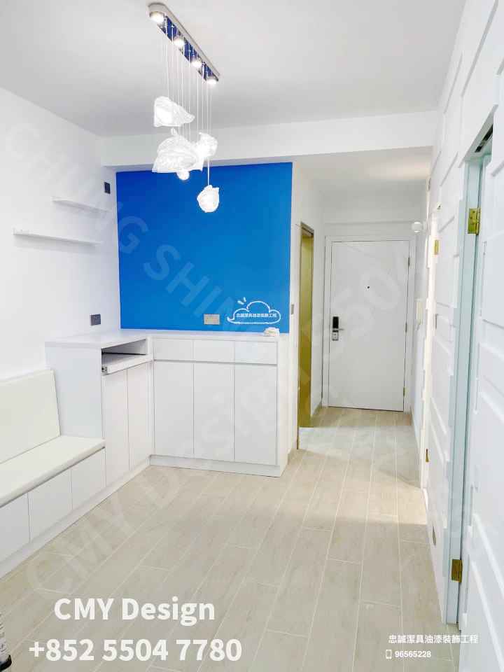 項目:油漆,地板,2房改3房,裝門,傢俬訂造,香港師傅現場手工製特色牆,水電重做