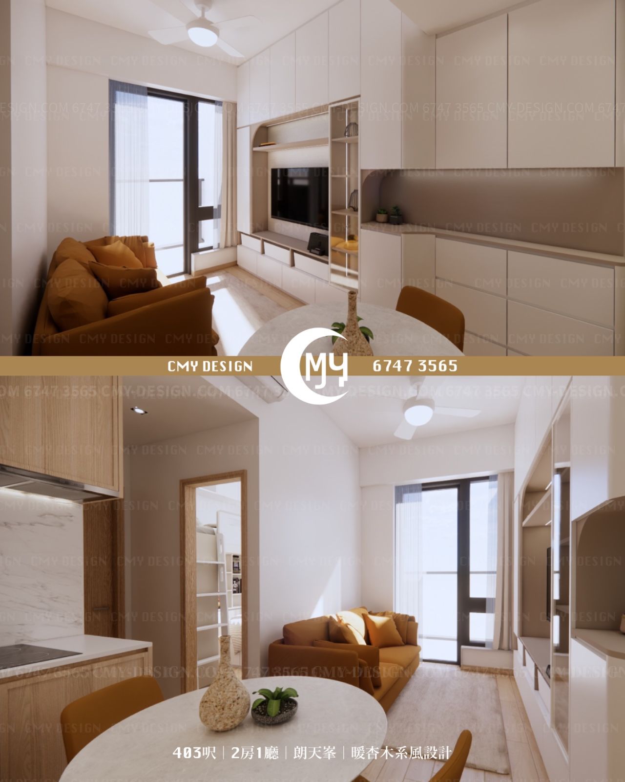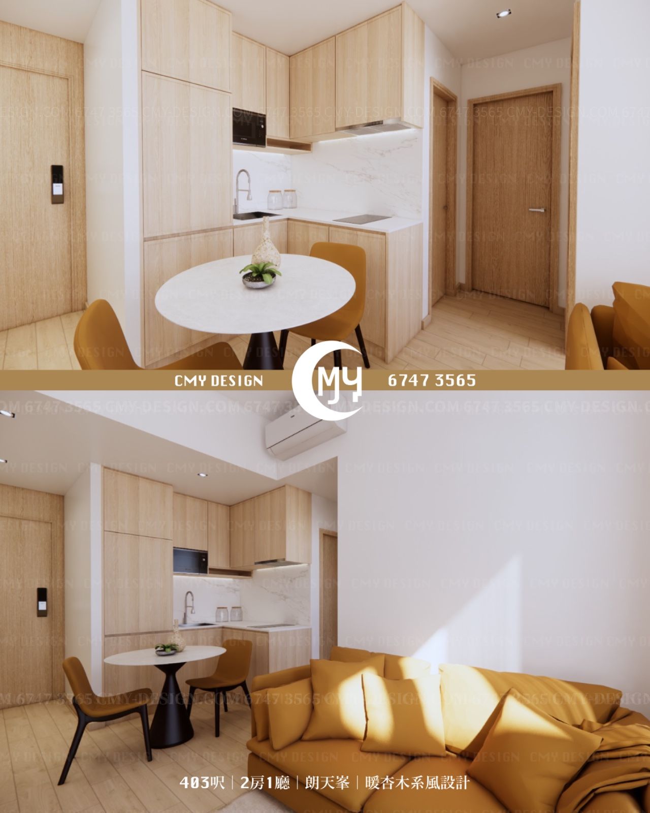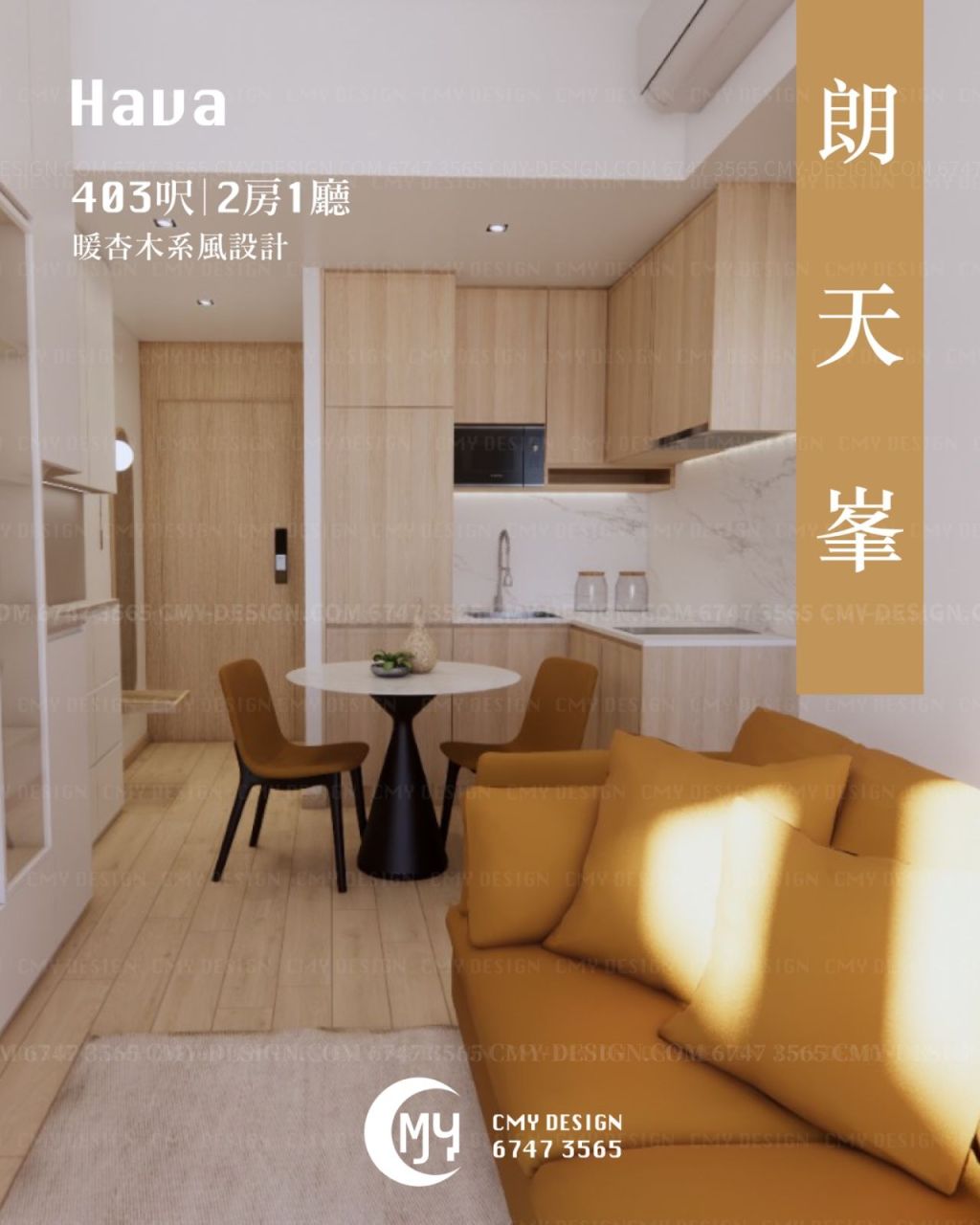 403呎|2房1廳|朗天峯|暖杏木系風設計