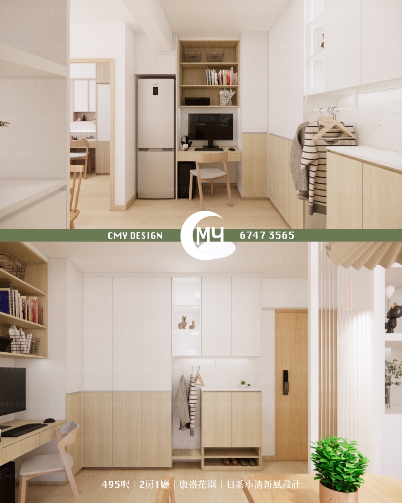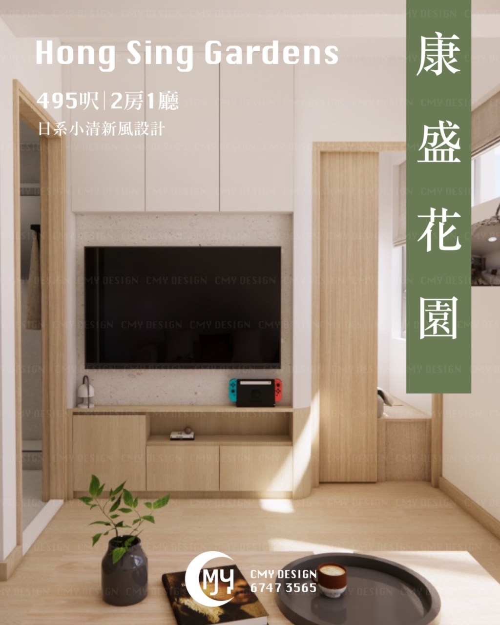 495呎 |2房1廳|康盛花園|日系小清新風設計