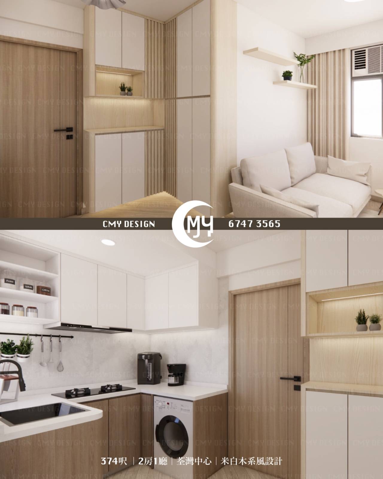 374呎 |2房1廳|荃灣中心|米白木系風設計