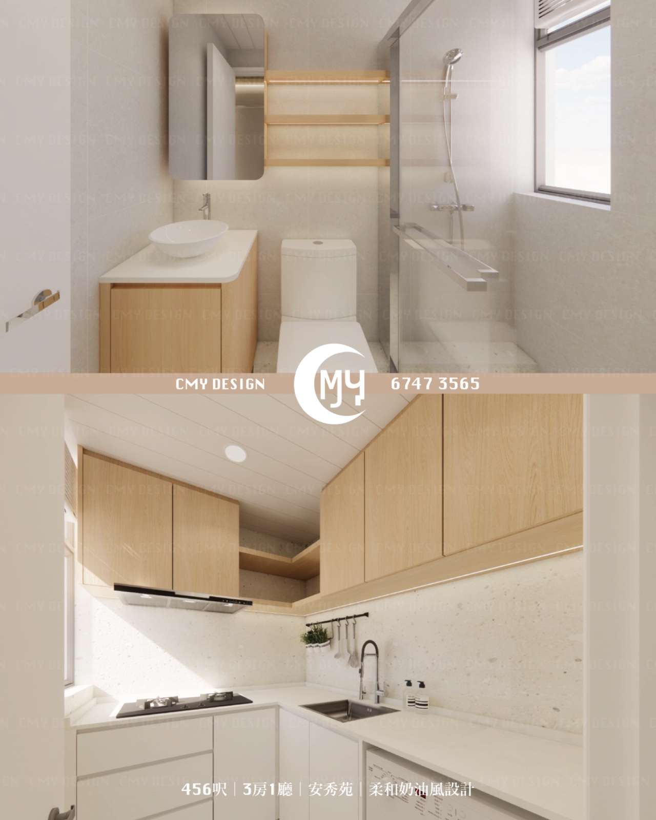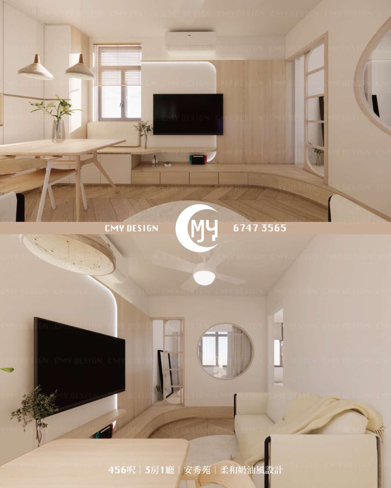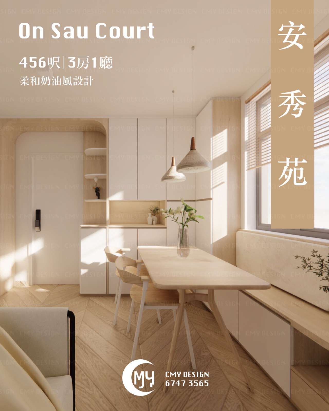 456呎|3房1廳|安秀苑|柔和奶油風設計Designer:Mio n Yoko